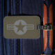 This design was adopted in 1980's. It is being used as low visibility roundel in aircrafts of the United States Military. Background color is olive drab camouflage.
