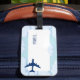 An airplane luggage tag is a practical and stylish accessory designed for travelers to identify and personalize their baggage. It often features an airplane-themed design, such as a silhouette or graphic of an aircraft, making it visually appealing and travel-oriented. Made from durable materials like leather, metal, or plastic, it includes a secure strap to attach to luggage handles and a slot for displaying contact information. This tag not only helps prevent lost luggage but also adds a touch of personality to your travel gear.