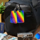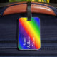Luggage Tag/Rainbow w/ leather strap Stand out in the baggage carousel with a custom luggage tag from Zazzle! No larger than a business card and constructed of 100% acrylic, this luggage tag is ready to stand-up to the travel demands of any road warrior or adventure seeker. Produced using the AcryliPrint®HD printing process, your baggage tag shows designs, text, and photos in vibrant clarity and brilliant colors. Customize with your personal information on each side and escape bag mix ups for years to come. Dimensions: 2" x 3.5" (business card size). Made of ultra-durable acrylic. UV resistant and waterproof. Leather luggage strap included.