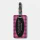 Luggage Tag w/ leather strap - Needlepoint look design - very bohemian feminine with magenta and plum