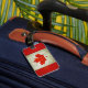 Luggage tag with cool Canada flag. The best way to identify your luggage when travelling the world. We change and add both text and colors, as well as size and placement, all upon request. Contact us with your unique needs and we do the rest!