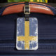 Luggage tag with REAL dirty vintage flag from Sweden. We change and add both text and colors, as well as size and placement, all upon request. Contact us with your unique needs and we do the rest!