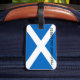 Crafted with attention to detail, this luggage tag proudly displays the striking Saltire flag of Scotland. The flag features a white diagonal cross (representing Saint Andrew, the patron saint of Scotland) on a blue field.
