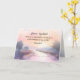 Greeting card with Christian inspirational quote scripture depicts a simple pastel watercolor scene with a country road, grey house and trees and a pink sunset background. It features an encouraging Bible Verse from Luke 18:27, Jesus replied, “What is impossible with man is POSSIBLE with GOD.” The greeting, prayer can be personalized or deleted for a hand written message.