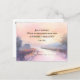 Postcard with Christian inspirational quote scripture depicts a simple pastel watercolor scene with a country road, grey house and trees and a pink sunset background. It features an encouraging Bible Verse from Luke 18:27, Jesus replied, “What is impossible with man is POSSIBLE with GOD.” The greeting, prayer can be personalized or deleted for a hand written message.