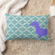 Unique lumber cushion with half of the silhouette of a purple dachshund on the front & the other half on the back.