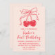 Lumber & Red Bow Cherry Fruit 1st Birthday Party Invitation