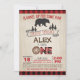 Lumberjack 1st Birthday Invitation - Red/Bear