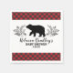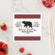 Celebrate your party with this personalized lumberjack paper napkin. It features bold lettering, a bear among foliage with a buffalo plaid pattern on the border. It makes an adorable addition for your buffalo plaid baby boy shower. Personalize it with the mother to be's name and date of the baby shower. Designed for you by Blackberry Boulevard.