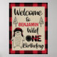 Cute lumberjack themed first birthday party welcome sign, A great way to greet guests to your little wild one's lumberjack themed first birthday party. Same design invitation is available at the store.