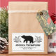 A rectangle wilderness bear return address label. It features a woodland bear and forest foliage.