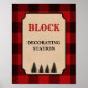 Block Decorating Station Sign - features a red plaid lumberjack design for your baby shower.