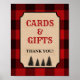 Cards & Gifts Sign - features a red plaid lumberjack design for your baby shower or birthday party.