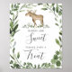 Give your guests a lovely direction with our lumberjack moose are sweet please take a treat sign, featuring watercolor greenery eucalyptus garland and elegant handwritten style font.
