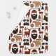 Cute lumberjack pattern baby blanket: beards, trees and axes! Buffalo plaid elements in brown and red. Cute addition to your lumberjack or woodland themed baby room.