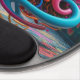 The plastic backing is nice and sturdy. The grippy pads underneath keep the mouse pad where I put it on my table. The pad the mouse sits on is cut well to fit the backing. The wrist pad is perfectly soft, supportive, and thick. I'm left-handed, and this mouse pad works just as well for me as it does for my right-handed friends. I'm the designer of HippieClecticHope products. I'm blown away by how well my intricate fractals turn out on the tangible items in the Zazzle Marketplace. This particular mouse pad ***appears*** like a 3D object... A mathematically-engineered rainbow black opal, inlaid under transparent fabric...