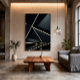 Warm light lines slice through dark planes in a futuristic architectural choreography. Abstract art embodying intelligence, precision, and technological calm. Perfect for luxury spaces, innovative corporate identity, or immersive digital experiences—where minimalism meets the brilliance of innovation.