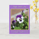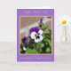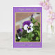 This card features a calming lavender border that frames a central flower photo with a thin golden outline. In the close-up, one large bloom shows velvety violet upper petals that fade into crisp white along the lower edges, creating a gentle, romantic contrast ❤️. Deep purple lines radiate like a starburst from a glowing yellow center, as if the flower is quietly reaching out with affection. Rich green leaves surround the bloom, and softly out-of-focus flowers behind it add depth, like distant friends sharing the moment 🌼. Bright natural light brings out the petal textures and soft shadows, giving the scene a tender, intimate feel. A short message appears in white cursive-style lettering near the top, with another line in matching white lettering near the bottom, both set against the photo for easy reading. The centerpiece flower sits slightly off-center, with the golden outline neatly tracing the photo’s edges inside the lavender frame.
