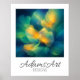 A mesmerizing abstract floral poster featuring radiant golden petals blooming amidst deep blues and teals. This ethereal design evokes a dreamy, glowing atmosphere with soft, flowing textures and painterly light effects. Perfect for adding elegance and tranquility to any space.