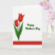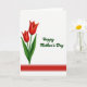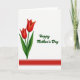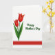 This card shows two upright flower buds on the left, standing close together like a pair sharing a quiet, affectionate moment ❤️. The petals are deep red with a thin golden-yellow edge that gives them a softly lit outline against the white background. Thick green stems rise from the bottom with wide, flowing leaves that curve outward, adding a gentle sense of movement. On the right side, a short message is placed in flowing green lettering, balanced to sit at about mid-height next to the flowers. The open white space around the words and blooms keeps the scene airy, like a calm pause between close friends 🌼. Along the bottom, a wide red horizontal band stretches across the card, bordered by two narrow white lines. The flowers’ golden-edged petals and the red band echo each other, while the green text mirrors the leaves in color. The final detail is the solid red stripe anchored at the bottom edge, framed neatly by thin white lines.