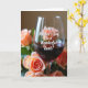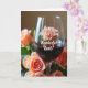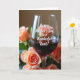 This card shows a calm, intimate still-life scene centered on a clear glass filled with deep ruby-red liquid, catching soft highlights along its rim and sides. Around it, softly blurred roses in peachy-orange tones lean in like close companions, their petals forming a gentle frame that feels affectionate ❤️. The background stays dreamy and out of focus, with warm, diffused light spreading a cozy glow across the arrangement. A short message is placed directly over the glass, set in flowing lettering that looks light in color against the darker drink for easy contrast. The tender pairing of the rosy blooms and the rich red drink suggests closeness, like a quiet toast shared between loved ones. Subtle reflections in the glass add depth, while the roses’ warm shades bring a calm, friendly romance to the scene 🌼. The text sits centered on the glass, with the peach roses clustered to either side and fading softly into the background.