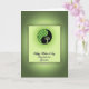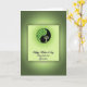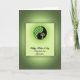 This card features a square design set on a soft green gradient background that moves from lime tones to deeper olive shades. Near the top sits a round emblem split into two curved sections, suggesting two sides leaning toward each other like close friends ❤️. One side is a dark, near-charcoal green with the silhouette of a stylized tree, its branches stretching upward in a calm, reaching gesture. The other side is a lighter green filled with a repeating pattern of small leaf shapes, adding a gentle, nature-inspired texture 🌼. Thin rays extend outward from the circle, like a quiet glow spreading across the upper half of the card. Below the emblem, a line of flowing dark-green lettering is centered, with the text placed in the lower portion and spaced to feel airy against the pale background. The overall palette stays within greens, with the round emblem and its radiating lines standing out most clearly against the lighter card face. The circle’s two-tone halves meet at the center seam, with the leaf pattern on the right and the tree silhouette on the left.