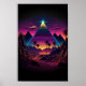 A striking and dynamic synthwave artwork depicting a pyramid standing in the center of a barren, neon-lit mountain landscape. The iconic synthwave aesthetic is brought to life through the use of bold, contrasting colors and sleek, stylized elements, evoking feelings of nostalgia and a longing for a past that never was.
