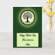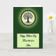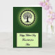 This greeting card opens on a deep forest-green background that feels calm and intimate, like a quiet walk together. Near the top sits a glowing round emblem, with a pale green center holding a dark tree silhouette whose curling branches and spreading roots suggest two lives growing side by side ❤️. A jagged darker ring frames the circle like a sunburst, and a soft green halo fades outward into the darker backdrop, adding a gentle, romantic glow. Beneath the emblem, a pale lime-green rectangle with a thin dark outline creates a neat space for the message. The main text is placed centered inside this panel in flowing black lettering, reading like a close note shared between family or friends 🌼. The greens shift from deep to light across the design, guiding your eye from the luminous tree down to the message area. The lower panel sits horizontally under the circle, with the black text standing out clearly against the light green field.