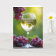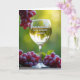 Designed with a softly lit outdoor scene, this card centers on a tall stemmed glass filled with golden liquid that catches the light like a quiet toast between loved ones ❤️. Ruby-toned clusters of small round fruits frame the glass, with one bunch draping from the upper left as if leaning in close. Another cluster rests along a rustic wooden surface at the bottom, adding texture and a grounded, homey touch. The background fades into blurred greens and sun-warmed yellows, suggesting a garden or vineyard where gentle companionship lingers. A bright glow from the upper right highlights the glass rim and sends warm reflections across the scene, giving everything a calm, affectionate mood. The message “Happy Mother’s Day To my wonderful Daughter!” appears within the golden liquid, centered in the glass, in light lettering that stands out against the warm tone 🌼. The fruit skins look glossy with tiny highlights, and the wood grain beneath them shows soft brown lines and knots.