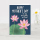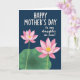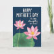 The front design shows two luminous pink water flowers rising side by side, their layered petals shifting from soft blush to deeper rose as if leaning toward each other in quiet affection ❤️. Each bloom has a sunny yellow center with a lightly textured look that draws your eye like a shared spark. A large green lily pad sits at the lower left, its faint veins and shading giving it a calm, grounded presence beneath the flowers. The background is a deep navy blue, creating a still, nighttime-pond setting that makes the colors feel tender and close. Near the top, a short affectionate message appears in crisp white letters, with the main words in a rounded style and a second line in a flowing, cursive-like look. The text is centered above the flowers, leaving generous space so the blossoms feel like the focus of the moment 🌼. Subtle highlights along the petal edges and gentle shadows under the blooms add depth, while the lily pad shows fine vein lines and a slightly curved rim. The final detail is the contrast between the bright yellow flower centers and the dark navy background, with the white message sitting clearly above them.