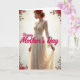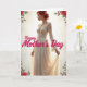 This card features a graceful woman shown in profile, her calm expression and auburn hair swept up into an intricate bun with tiny shimmering accents. She wears a flowing ivory gown with lace details, a deep V neckline, and ornate sleeves that suggest a tender, romantic softness in the way the fabric falls. A sparkling necklace and matching earrings catch the light, while a subtle beaded waistband shapes her silhouette. Her hands gently gather the skirt, creating rippling folds that feel like a quiet dance, and a small ❤️ adds a sweet touch to the mood. A warm backlight creates a soft halo around her, giving the scene an intimate glow without overpowering the gentle tones. Red roses and lush green leaves curl inward from the corners like a floral embrace, adding rich color and a hint of closeness 🌼. On the left side, the message “Happy Mother’s Day” appears in bright magenta lettering, standing out against the pale background beside the figure and flowers.