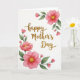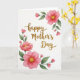 This card features a bright white background with a flowing gold message centered on the front, its metallic look catching the light like fine glitter. The lettering curves gently across the middle, giving the layout a soft, affectionate tone ❤️. Around the corners, watercolor-style flowers and leaves frame the text, as if leaning in toward it like close friends sharing a quiet moment. The largest blossoms are rich pink with darker fuchsia centers that fade into lighter rose at the edges, creating a tender, romantic glow. Small yellow stamen clusters sit in the middle of each main flower, adding a sunny contrast 🌼. Nearby, a few closed buds tuck in beside layered green leaves, with subtle shading that makes the foliage feel fresh and natural. The floral elements stay mostly at the edges, leaving plenty of open space so the gold message remains the focal point, and the corners show pink blooms, yellow centers, and green leaves surrounding the centered gold text.