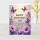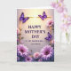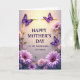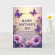 Designed with a soft, glowing floral look, this Mother’s Day card centers on a golden rectangular frame that draws your eyes in like a gentle embrace. Inside the frame, the message “HAPPY MOTHER’S DAY TO MY WONDERFUL STEPMOM” sits in deep, luminous purple lettering, neatly centered and easy to read. Around it, pastel pink rose-like blooms and lavender daisy-like flowers spill outward, their petals overlapping as if leaning close to one another ❤️. Four jewel-toned purple butterflies hover nearby, angled like they’re circling the message in a tender, unhurried dance. The arrangement feels like a quiet moment of closeness, with the butterflies and flowers seeming to share the space the way close friends do. A warm golden glow washes the upper background, fading softly into a muted lavender-gray toward the edges 🌼. Fine petal details and delicate wing patterns stand out against the smooth gradient backdrop.