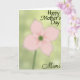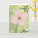 This card features a softly blurred four-petaled flower in gentle blush pink, filling the center like a tender moment held in focus just long enough to feel ❤️. The petals fade at the edges, and a deeper emerald-green circular center anchors the bloom with a calm, steady presence. A thin, hazy stem trails downward, giving the airy flower a quiet sense of grounding. Behind it, a pale green background washed with hints of yellow glows like warm morning light, adding a cozy, affectionate atmosphere 🌼. The overall soft-focus look feels like a fond memory, where the delicate colors seem to lean toward each other rather than stand apart. Near the top, the words “Happy Mother’s Day” appear in dark green, flowing lettering that stands out clearly against the light background. At the bottom, “Mimi” is placed in matching dark green, smaller and lower on the page like a gentle sign-off. The flower’s pink petals sit centered beneath the top text, with the stem extending toward the lower edge under the name.
