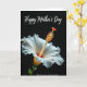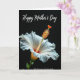 This card shows a close-up of a luminous white flower, like a tropical bloom, set against a deep black background that makes it glow. The broad petals open with gentle ruffles and fine veins, shifting from cool white at the edges to a soft peach warmth near the center, like a quiet embrace ❤️. In the middle, a pale yellow stalk rises to an orange-red, heart-like tip, surrounded by slender filaments dusted with orange pollen that feels like a small burst of affection. The strong light-and-shadow contrast gives the scene a calm, intimate mood, as if the flower is being spotlighted for someone special. Across the top, the message “Happy Mother’s Day” appears in white, flowing lettering that stands out clearly against the dark space. Along the bottom, “With all of my Love, Great Grandmother,” is placed in matching white text, neatly anchoring the design with a caring, close-to-home tone 👩. The petals curve outward in layered folds, and the center details glow in yellow and orange-red against the velvety black backdrop.