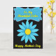 This design shows a deep black background that makes a large, symmetrical light-blue flower feel like it’s glowing from within ❤️. The petals spread outward like a stylized daisy, with fine texture lines that give the bloom a soft, caring presence. At the center sits a rich yellow core, bright and warm like a little sun, drawing your eye the way a close bond naturally does. Above the flower, a sky-blue banner stretches across the top with scalloped edges and a thin white outline that helps it stand out. Inside the banner, the words “To My Beautiful Sister” appear in bright yellow, flowing lettering that looks gentle and affectionate. Beneath the flower, “Happy Mother’s Day” is placed in the same bright yellow lettering, centered and easy to read, adding balance to the layout 🌼. The blue petals and yellow center stay crisp against the dark backdrop, with the banner hovering above and the lower line of text neatly anchored below. The banner’s pale blue fill, white edging, and yellow lettering sit clearly over the black space at the top of the card.