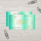 Luminous Teal Gold Ornate Corner Border Initials Business Card