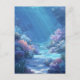 Dive into a world of tranquility with this stunning underwater postcard. The artwork features a vibrant aquatic canyon filled with soft, painterly coral formations in shades of lavender, blush pink, and icy blue. Ethereal sunbeams pierce through the crystalline turquoise water from above, illuminating the sandy seafloor and creating a magical, dreamlike atmosphere. Every detail, from the swaying sea plants to the shimmering light rays, evokes the peaceful energy of a hidden tropical reef. This postcard is perfect for sending a calming note, a summer greeting, or as a beautiful decorative piece for ocean lovers.