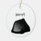 Lightweight, smooth, pure white ornament with nice sheen. Perfect size to be seen from across the room ... and to attract closer inspection! Price was great for ordering enough for the whole family! Clear, bold black design just as requested. Matches the order exactly. Just so nice!