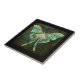 This pretty tile features and abstract collage created from original photos of a graceful, pale green Luna Moth on a dark, texture-look background. Order as is or choose from the options to frame it or place it on the top of a trinket box.