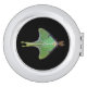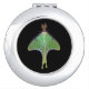 This compact mirror features the incredible luna moth, a lime-green, Nearctic Saturniid moth in the subfamily Saturniinae. With a wingspan of up to four and a half inches, this lovely creature ranks as one of the largest moths in North America. This adult moth has just emerged from the cocoon and is waiting on the bark of a tree trunk to dry and harden. The adults do not eat or have mouths. They live for only one week and emerge as adults only to mate. With lime green color and distinctive eyespots this is a very mysterious, magical looking being.