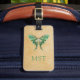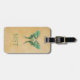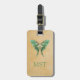 An elegant baggage tag for the nature lover, featuring a digital collage of a graceful, pale green Luna Moth and the traveler's monogram on one side. A repeat of the moth on the reverse with a template for name and address.