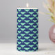 This nature-inspired design is made up of mint-colored Luna moth silhouettes over a blue background.