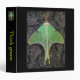 This Earth Day binder features the incredible luna moth, a lime-green, Nearctic Saturniid moth in the subfamily Saturniinae. With a wingspan of up to four and a half inches, this lovely creature ranks as one of the largest moths in North America. This adult moth has just emerged from the cocoon and is waiting on the bark of a tree trunk to dry and harden. The adults do not eat or have mouths. They live for only one week and emerge as adults only to mate. With lime green color and distinctive eyespots this is a very mysterious, magical looking being. The text reads: Think green. It can be customized or deleted.