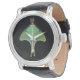 This wrist watch features the incredible luna moth, a lime-green, Nearctic Saturniid moth in the subfamily Saturniinae. With a wingspan of up to four and a half inches, this lovely creature ranks as one of the largest moths in North America. This adult moth has just emerged from the cocoon and is waiting on the bark of a tree trunk to dry and harden. The adults do not eat or have mouths. They live for only one week and emerge as adults only to mate. With lime green color and distinctive eyespots this is a very mysterious, magical looking being.