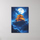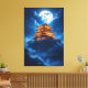 Journey to a world where ancient legends reside. This stunning artwork features a radiant, traditional Chinese pavilion crowning a misty mountaintop. The rich, golden glow of the palace contrasts beautifully with the deep azure sky, twinkling stars, and the dramatic light of the supermoon. Perfect for those who love fantasy, Asian art, and dramatic nightscapes.