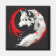A striking red and white yin yang wolf, symbolizing balance, harmony and duality.
