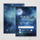 Lunar Sky Full Moon Celestial Galaxy Watercolor Design, with Night Shining Stars, and Glowing Moon Design on a luxurious Navy Blue, Pale Blue, and hints of purple watercolor texture. With Modern Typography Script Fonts. A trendy Magical design - Personalized Wedding RSVP Cards!