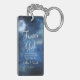 Lunar Sky Full Moon Celestial Galaxy Watercolor Design, with Night Shining Stars, and Glowing Moon Design on a luxurious Navy Blue, Pale Blue, and hints of purple watercolor texture. With Modern Typography Script Fonts. A trendy Magical design - Personalized Flower Girl Heartfelt Quote Keepsake Keychain!