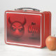 This is a standard metal lunchbox that appears to work just fine. We designed this box ourselves with an uploaded photo and custom text on the front and back. It looks absolutely beautiful except the front of the lunchbox is not centered like it shows in the photo. The print borders don't align with the inset flat part of the box where the preview photo online showed it perfectly centered in there. The back looks nice and centered though.